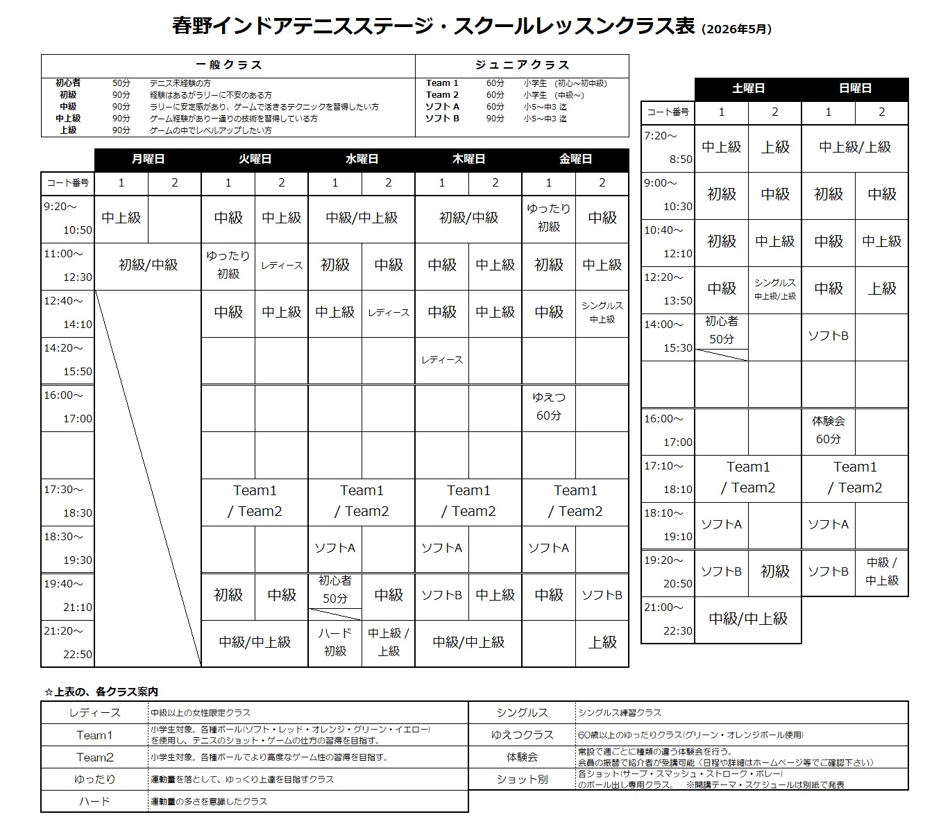 5月(4/29~)期・週間レッスンスケージュール 2026.04.25 Tweet Share Hatena Pocket RSS feedly Pin it 春野・スクールレッスンクラス表 (5月期)4/29~スタート Tweet Share Hatena Pocket RSS feedly Pin it 月間レッスンカレンダー(2026年4月~9月分) 春の入会キャンペーン開催中!! (2026.4.1〜5.17...
